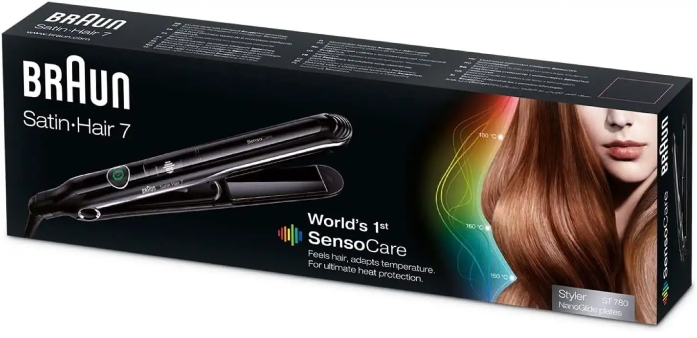 Satin Hair 7 SensoCare Black Hair Straightener with Ceramic Plates, Braun