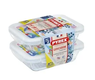Set of 2 rectangular glass storage dishes with leakproof lids, 0.8L each, butterfly design, by Pyrex