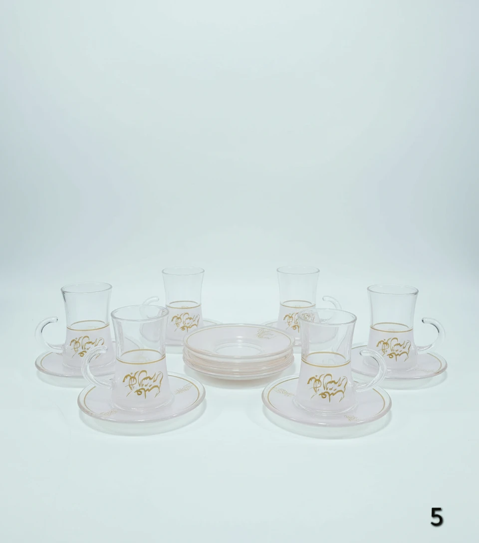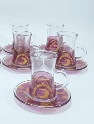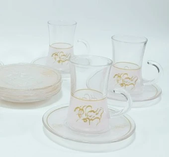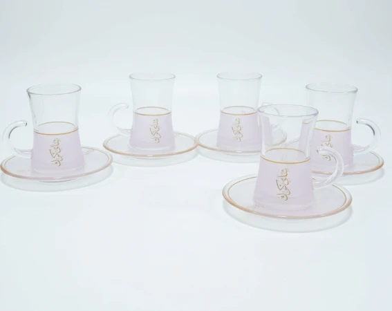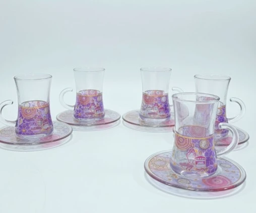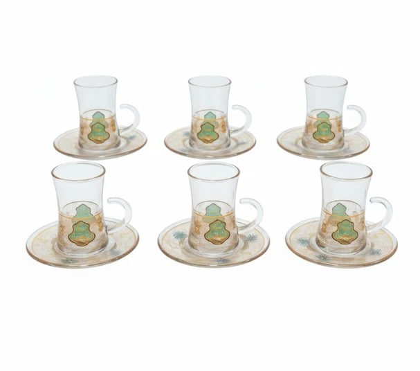 This beautiful set includes 6 glass tea cups, each with its own matching saucer. The elegant design, featuring intricate patterns, adds a touch of sophistication to any tea or coffee time. Available in different styles, this set is perfect for special occasions or daily use, bringing charm and class to your table.