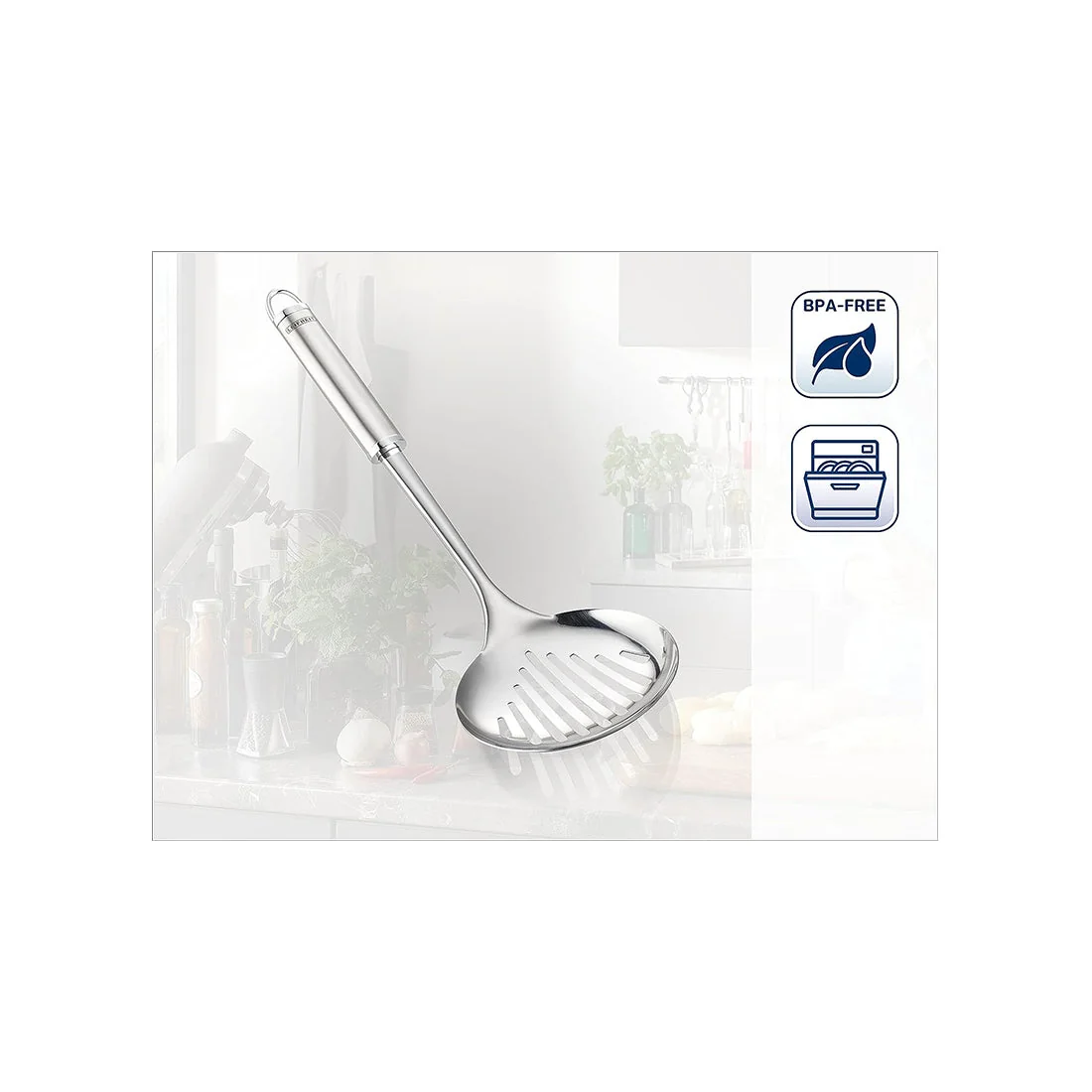 Stainless Steel Skimmer, Matte and Shiny Finish, Sterling Series by Leifheit