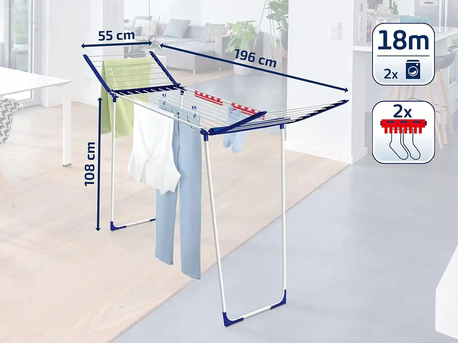Standing Clothes Dryer Pegasus 180 Solid Max, 18m Drying Length, Leifheit