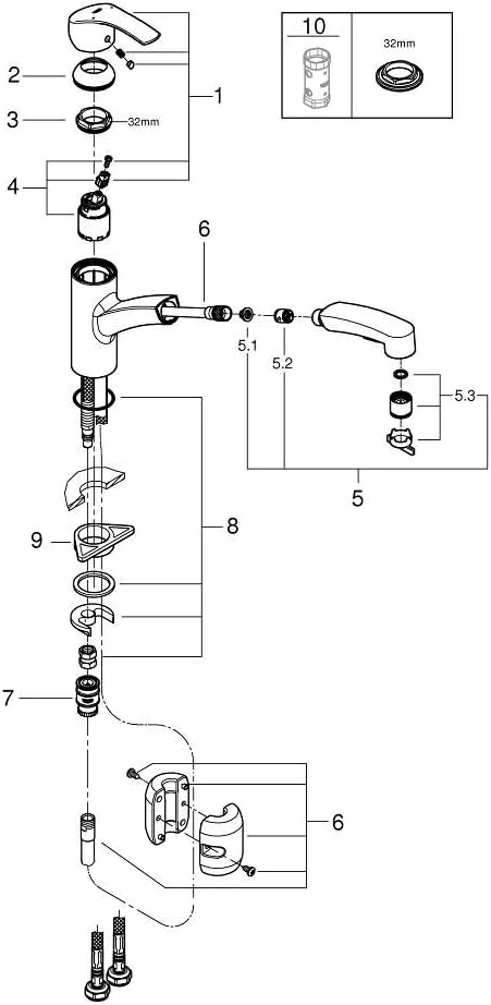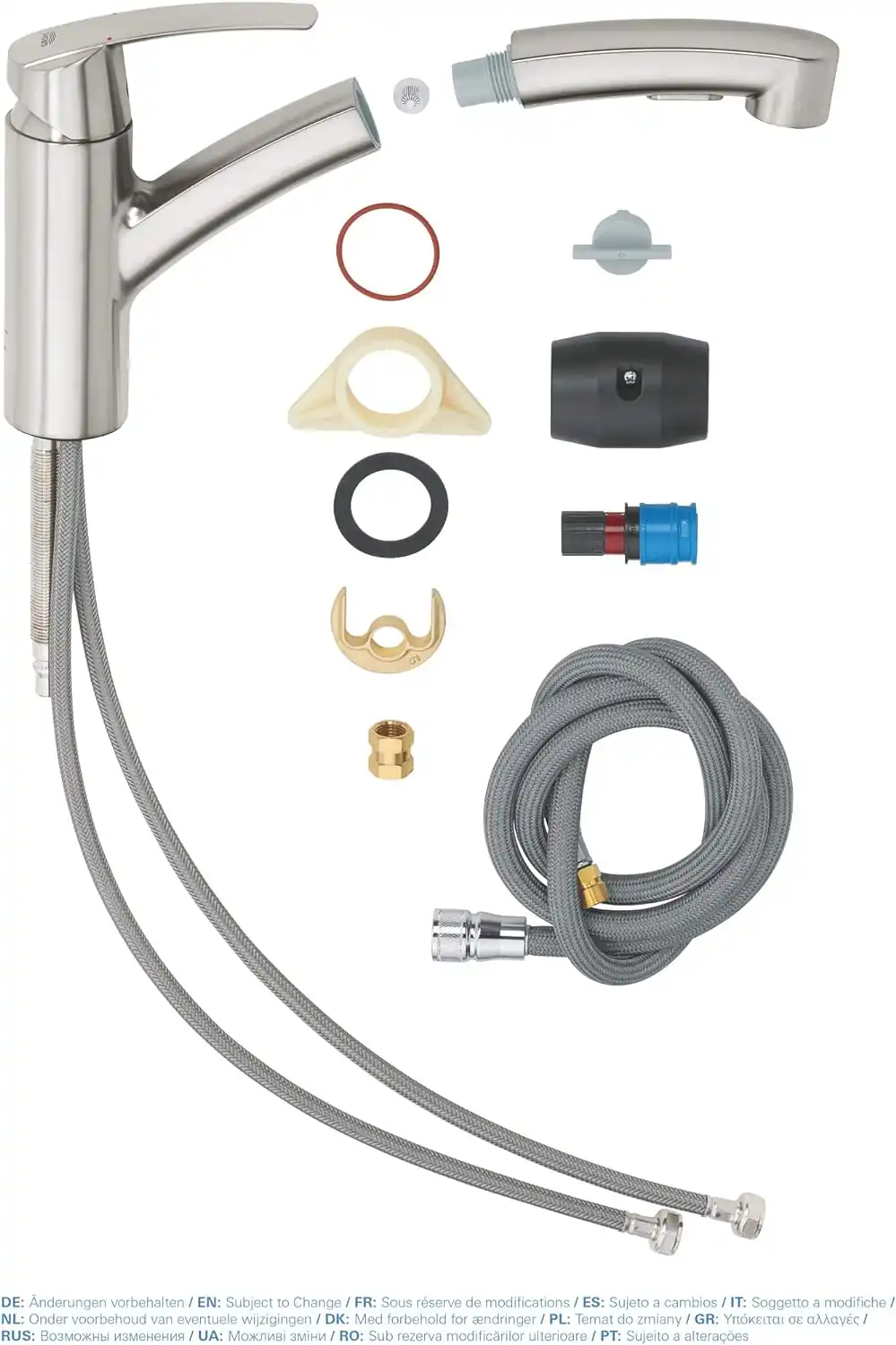 GROHE Zero separated inner water ways - lead and nickel free pull-out dual spray - switches back and forth between regular flow and spray diverter: laminar spray/SpeedClean shower jet automatic return to laminar spray rapid installation system protected against backflow
