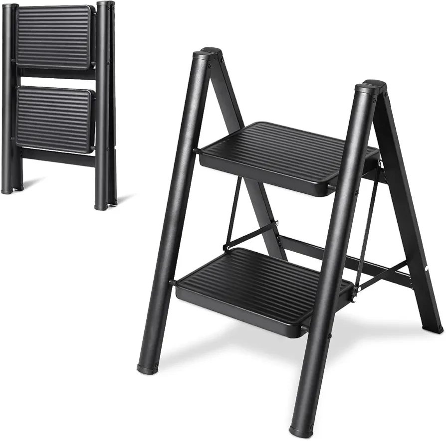 Introducing the Step Ladder Folding Step Stool by OOSOFITT, your ultimate solution for reaching new heights in your home. Designed to support up to 330 lbs, this heavy-duty step ladder is perfect for adults needing a reliable and sturdy boost in the kitchen, closet, or any tall space. Its sleek black design and lightweight build make it a stylish and practical addition to any household.