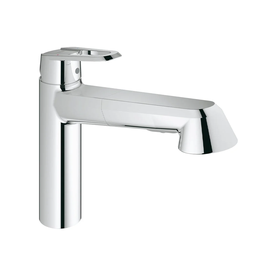 GROHE EasyDock guarantees easy retraction and smooth docking back to the starting position pull-out dual spray - switches back and forth between regular flow and spray diverter: mousseur/SpeedClean shower jet automatic return to mousseur flexible connection hoses