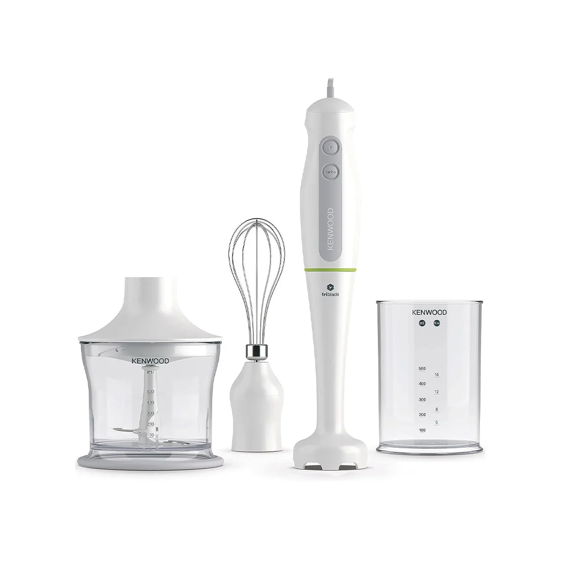 Triblade hand blender with chopper, beaker, and whisk, 600W, stainless steel blades, Kenwood