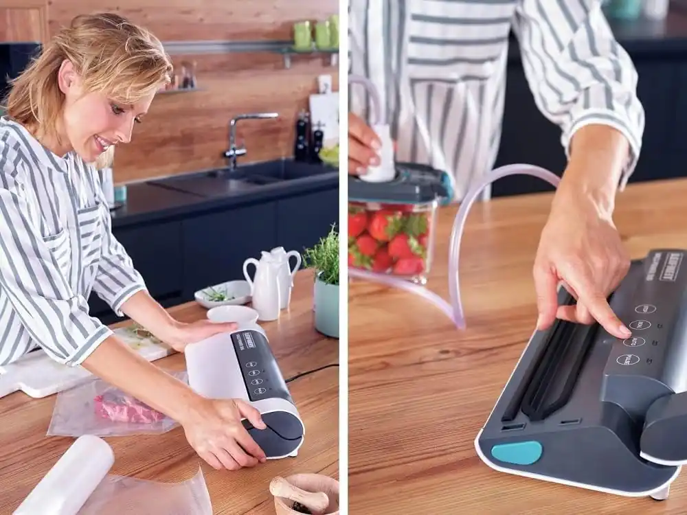 Food stays fresh longer thanks to fully automatic, electrical vacuuming and sealing