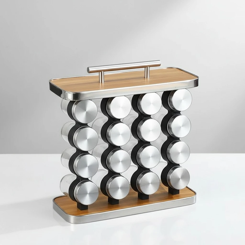 Upgrade your kitchen with this elegant and space-saving vertical spice organizer. Designed with a modern open structure, it blends seamlessly with all kitchen styles while keeping your spices neatly arranged and within reach.