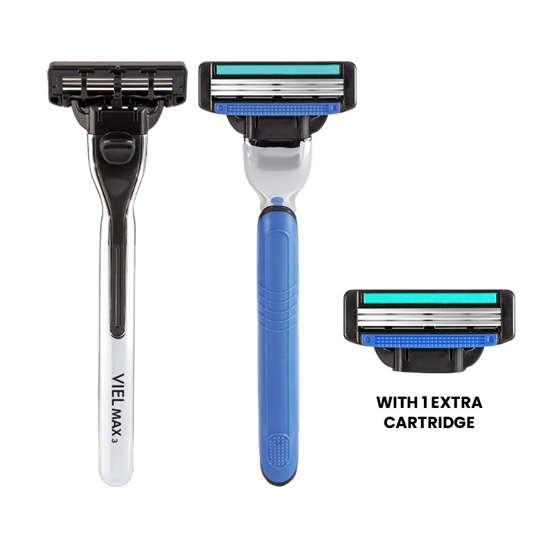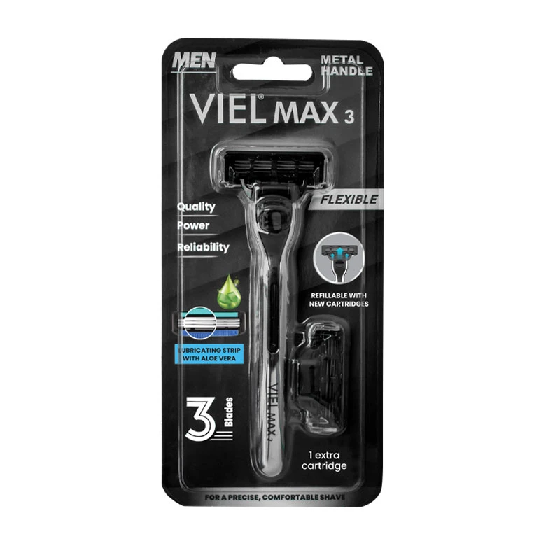 Experience the perfect shave with Viel Max 3, the razor designed for quality, power, and reliability. Its 3 ultra-sharp blades ensure a close and effortless shave, while the lubricating strip with Aloe Vera soothes and protects your skin with every stroke. Refillable and comes with 1 extra cartridge