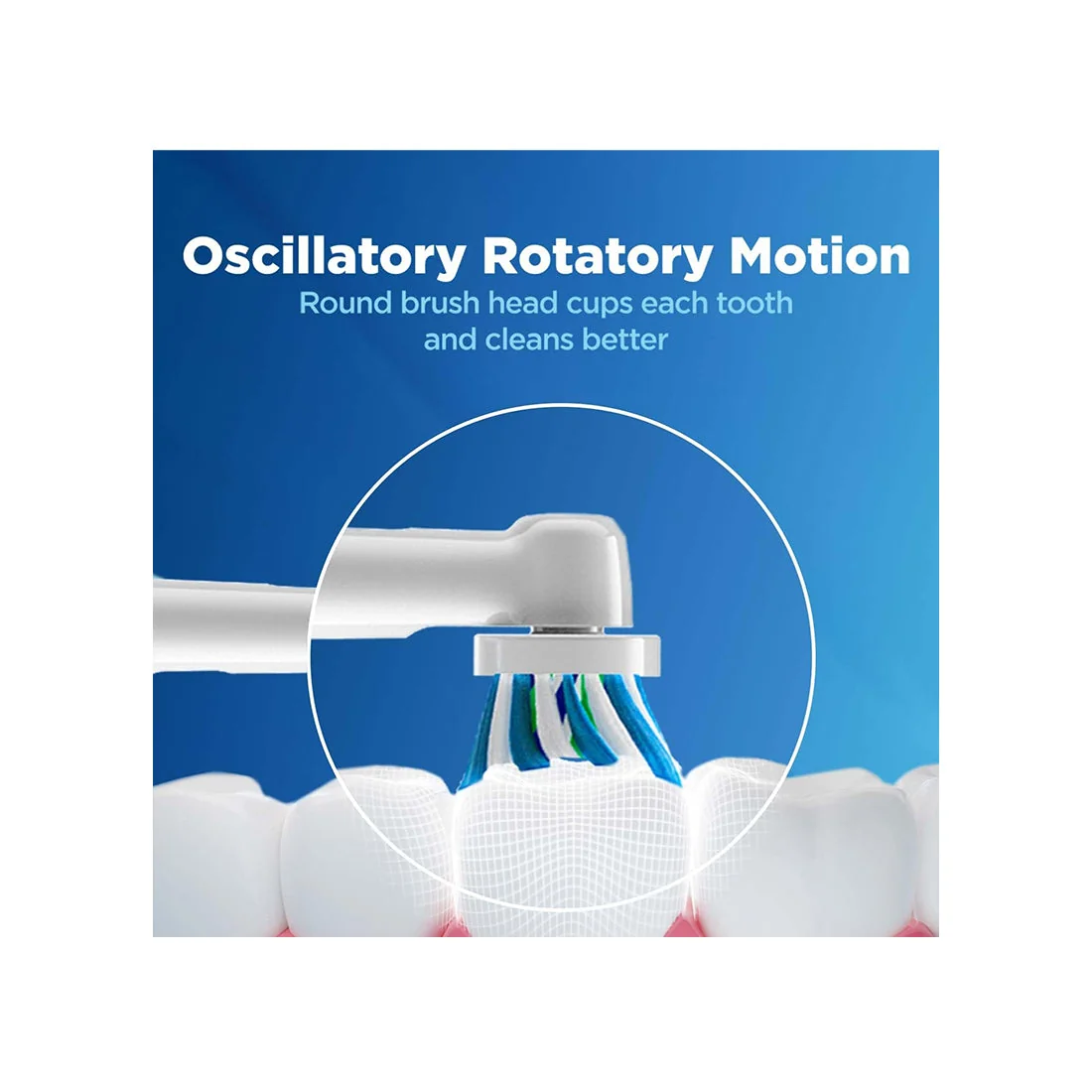 The head of the toothbrush oscillates and rotates for superior care