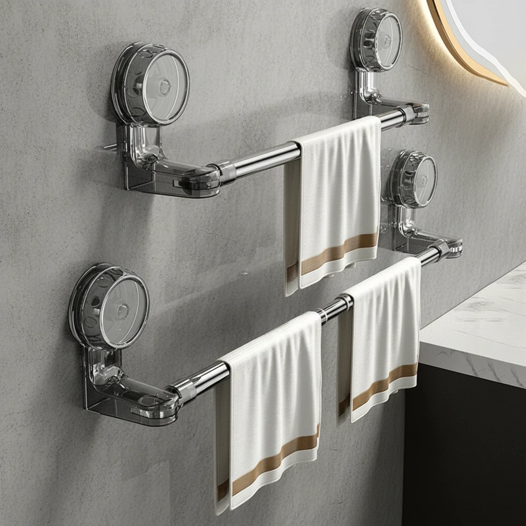 Keep your bathroom neat and organized with this wall-mounted double towel holder, designed for convenience and modern living. Featuring strong suction cup technology, it installs easily without drilling, screws, or wall damage—perfect for bathrooms, kitchens, or rental homes.