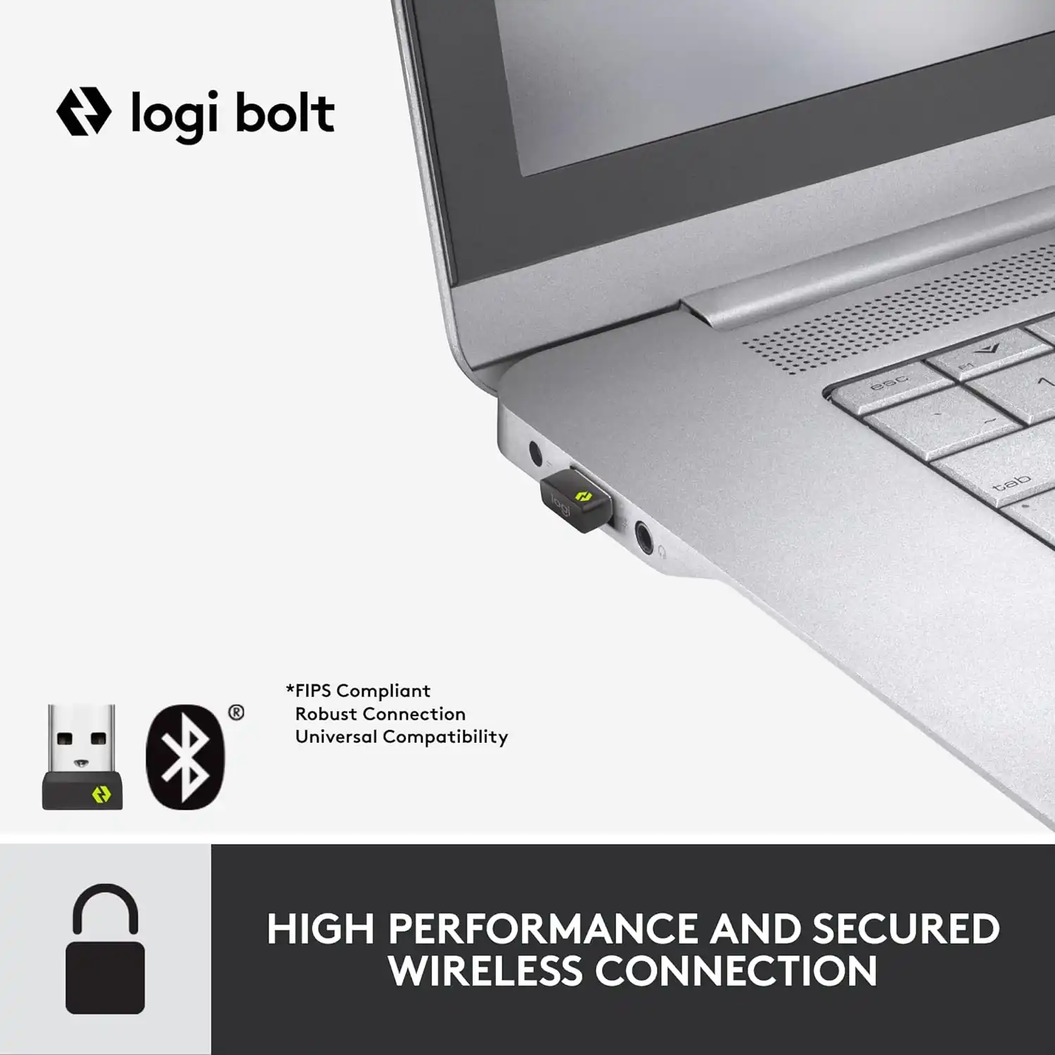 Two Ways to Connect: Choose between the Logi Bolt USB receiver when security is the priority or Bluetooth Low Energy wireless technology when cross-platform flexibility is needed