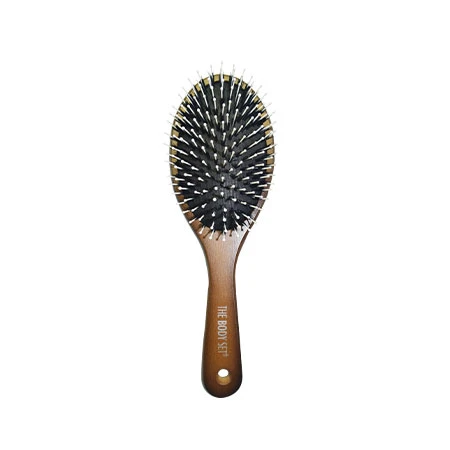 Get ready for a great hair day with this medium wooden brush made of wild boar bristles and plastic pins with ball tips to detangle and smoothen hair instantly. Suitable for all hair types.